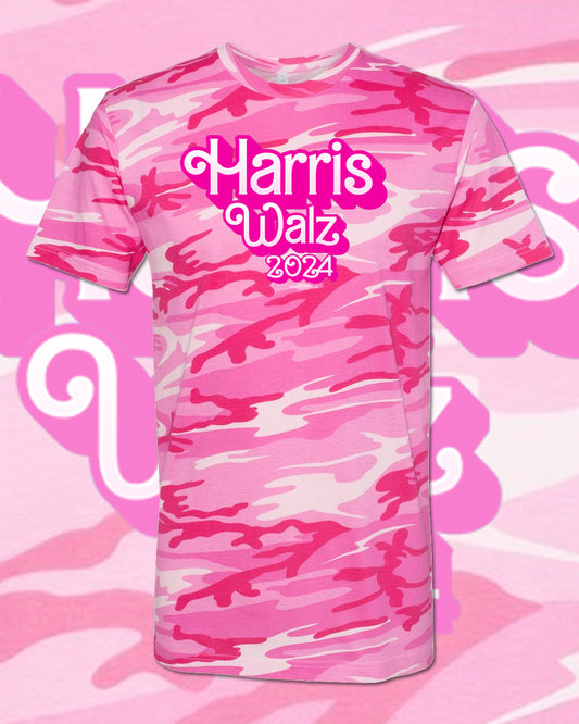 Harris Walz 2024 Barbilicious unisex camo pattern, in green or pink